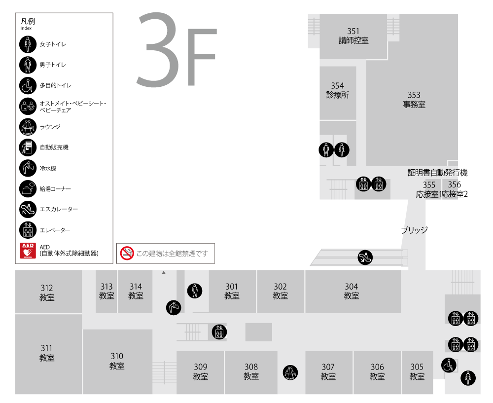 教室展示は高層棟の2階教室202、208と3階各教室で実施予定です。